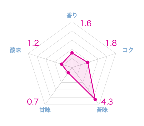 グラフをみて分かるように完全に苦みに振り切っているので、どなたも安心して飲める酸味のないコーヒー豆です。