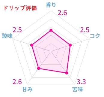ドリップすると、カカオを思わせるビターなアロマが立ち昇りますが、実際に飲むとその印象は一転して非常にあっさりとしたボディ感です。