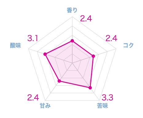 酸味については一定の存在感があるものの、果実を思わせるような華やかさや際立った個性はなく、あくまで標準的な範囲に留まっています。味わいの核となる甘みや素材本来の旨みも全体的に乏しいため、総じてあっさりとした物足りなさが残る仕上がりです。
