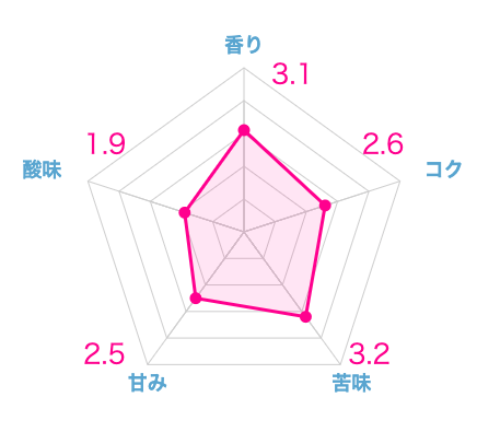 このランキングでは甘味、香り、コク、苦味、酸味をそれぞれ、0.1〜5.0点までの50段階で評価しています。