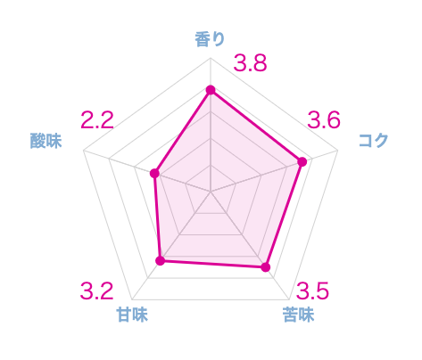 チョコレートのような香りがあり、実際に飲むとクルミのような風味が感じられます。