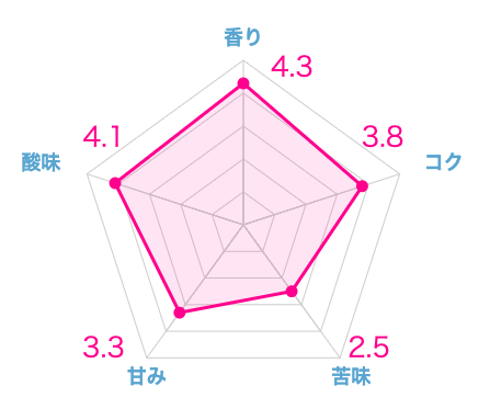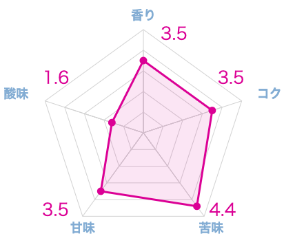 ほどよい苦味と酸味のバランスがよく、フルボディのコクがありながらも後味がスッキリしていて飲みやすいです。